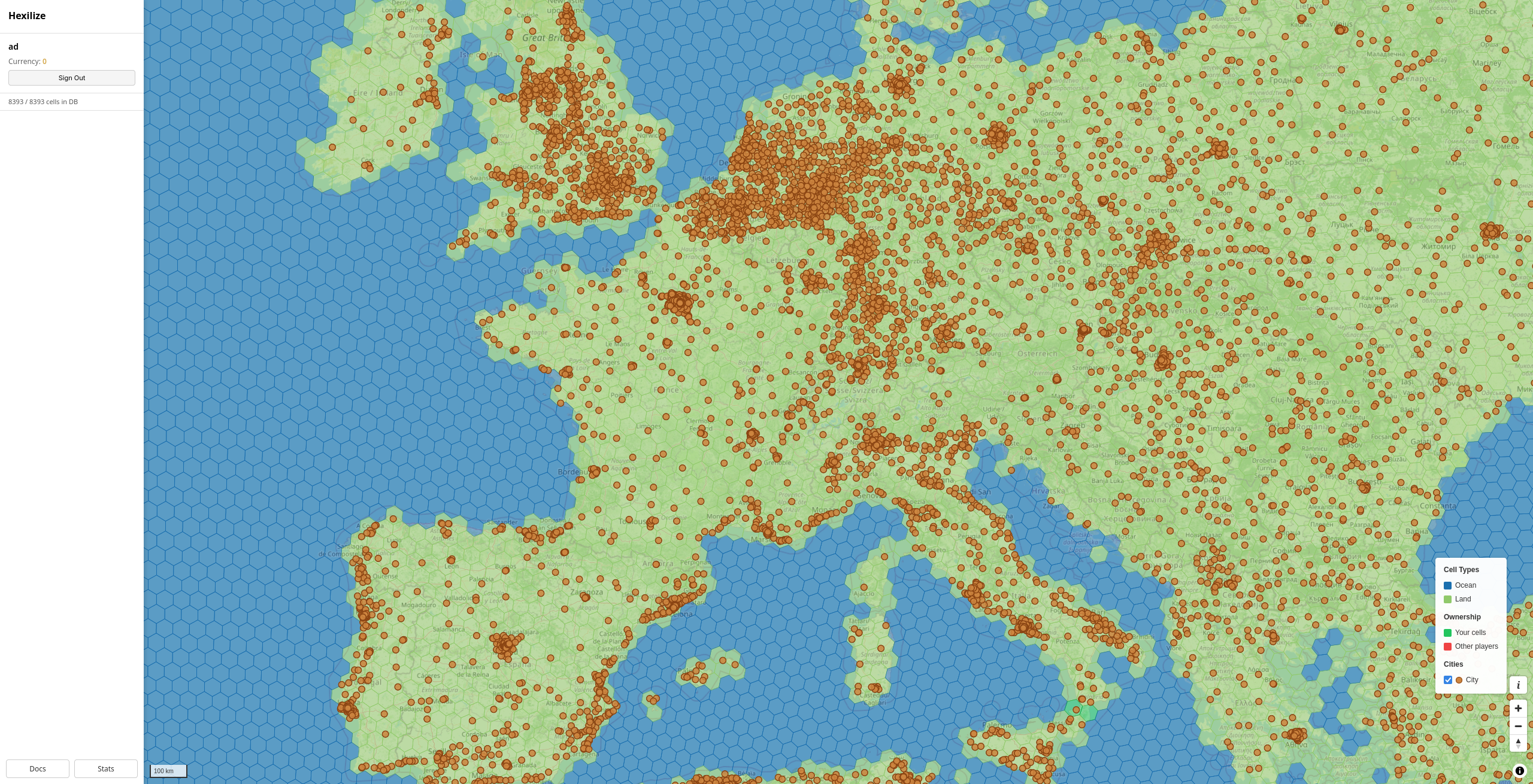 The Map is the main element of the game. It is were you have a global view of the world. For performance reasons the current amount of cells that can be shown is limited.
